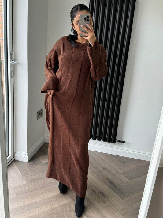 Faye Round Neck Knitted Maxi Dress in Brown