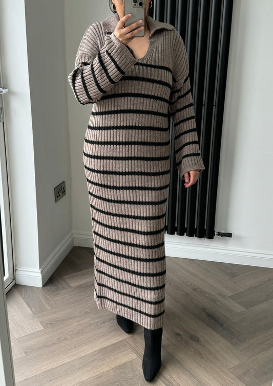 Lia Striped Maxi Dress In Mocha