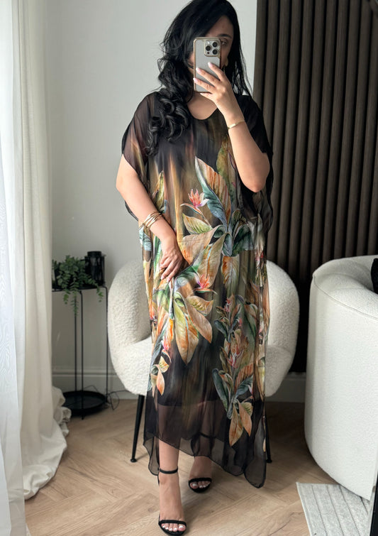 Mila Floral Kaftan In Black