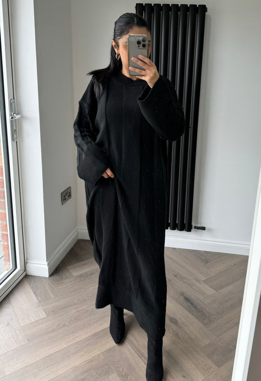 Faye Round Neck Knitted Maxi Dress in Black