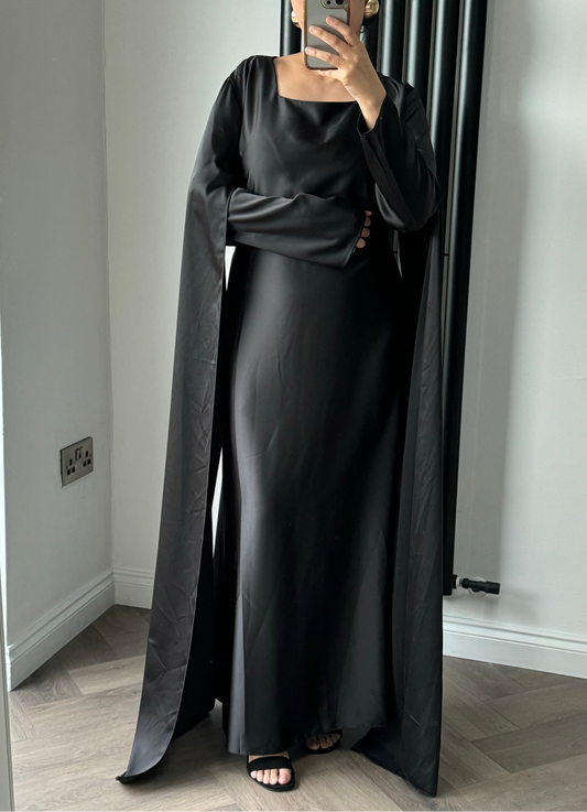 Hannah Cape Sleeve Maxi Dress In Black