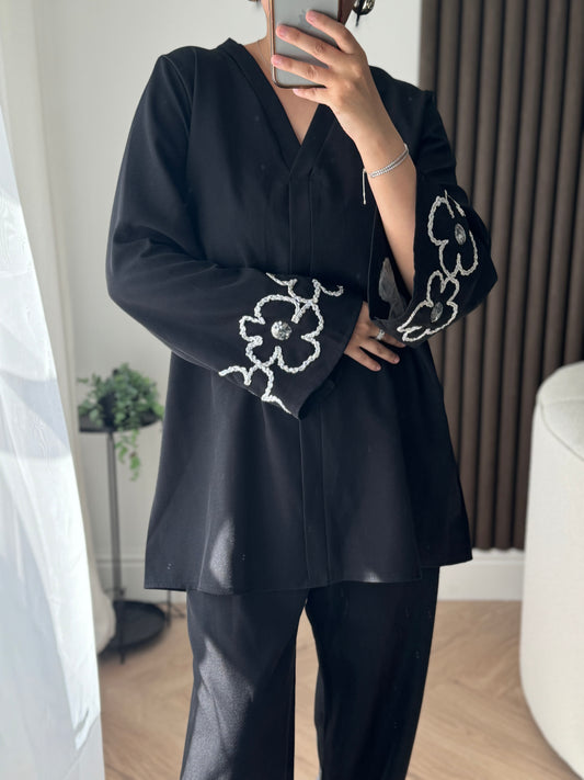 Maha Two Piece Set With Flower Sleeve Detail In Black